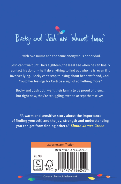 Ngày xuất bản: 130 x 198 x 27mm Số trang: 304 trang Kích thước: 04/02/2021 An accessible child-centred story about self-acceptance and the importance of opening up to those closest to you. Becky and Josh are almost-twins, with two mums and the same anonymous donor dad. Josh can't wait until he's eighteen, the legal age when he can finally contact his donor, and he'll do anything to find out more - even if it involves lying. Becky can't stop thinking about her new friend, Carli. Could her feelings for Carli be a sign of something more? Becky and Josh both want their parents to be proud of right now, they're struggling to even accept themselves. Một câu chuyện dễ đọc lấy trẻ em làm trung tâm về sự chấp nhận bản thân và tầm quan trọng của việc cởi mở với những người thân thiết nhất. Becky và Josh gần như là chị em sinh đôi, có hai mẹ và cùng một người cha hiến tặng ẩn danh. Josh không thể đợi cho đến khimười tám tuổi, độ tuổi hợp pháp mà cuối cùng anh ấy có thể tìm cha mình và anh ấy sẽ làm bất cứ điều gì để đi tìm sự thật - ngay cả khi điều đó liên quan đến việc nói dối. Becky không thể ngừng nghĩ về người bạn mới của mình, Carli. Liệu tình cảm của cô ấy dành cho Carli có thể là dấu hiệu của một điều gì đó nữa không? Becky và Josh đều muốn bố mẹ tự hào về họ nhưng hiện tại, họ đang đấu tranh để chấp nhận bản thân.