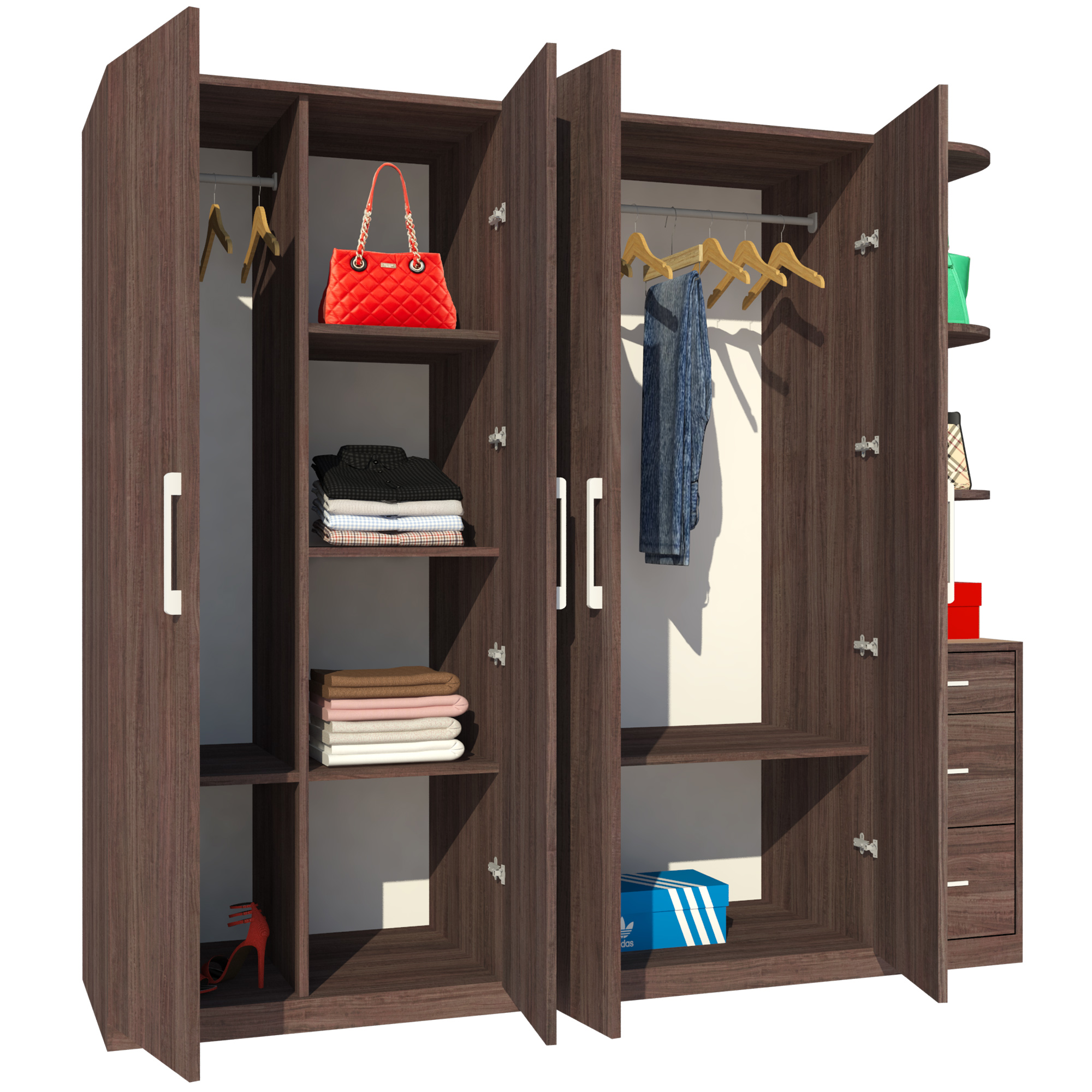 • Tủ chia thành 3 ngăn đứng và 4 cánh cửa giúp việc mở đóng nhẹ nhàng và tiện dụng.