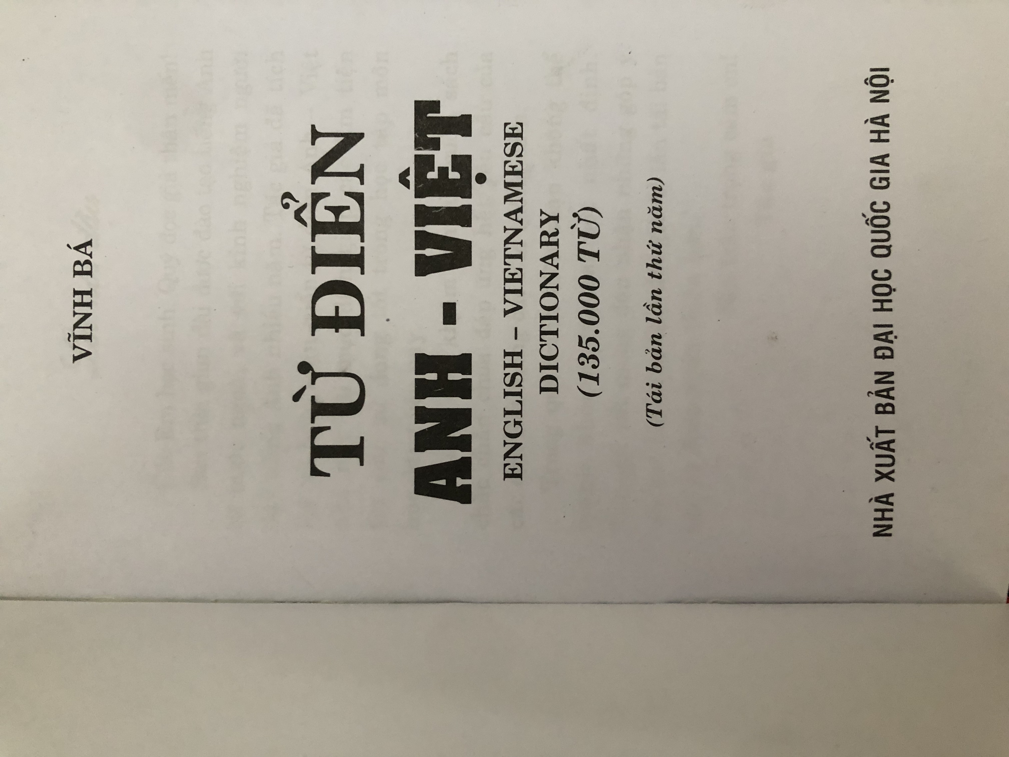 Từ điển Anh - Việt trên 135.000 từ (bìa cứng) - tái bản 04 Nhằm đáp ứng nhu cầu học tiếng Anh đa dạng của nhiều người. Nhóm chúng tôi đã biên soạn cuốn từ