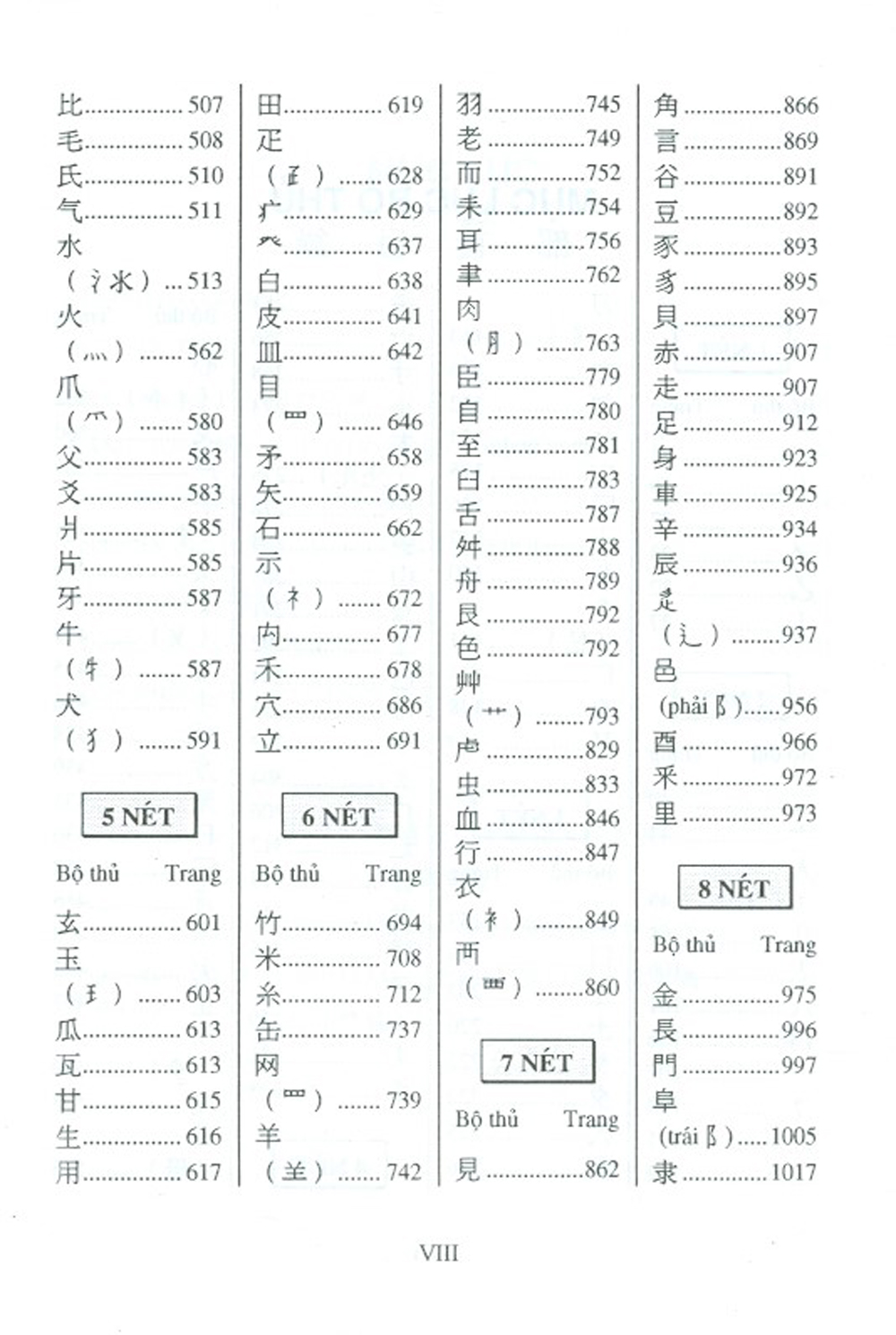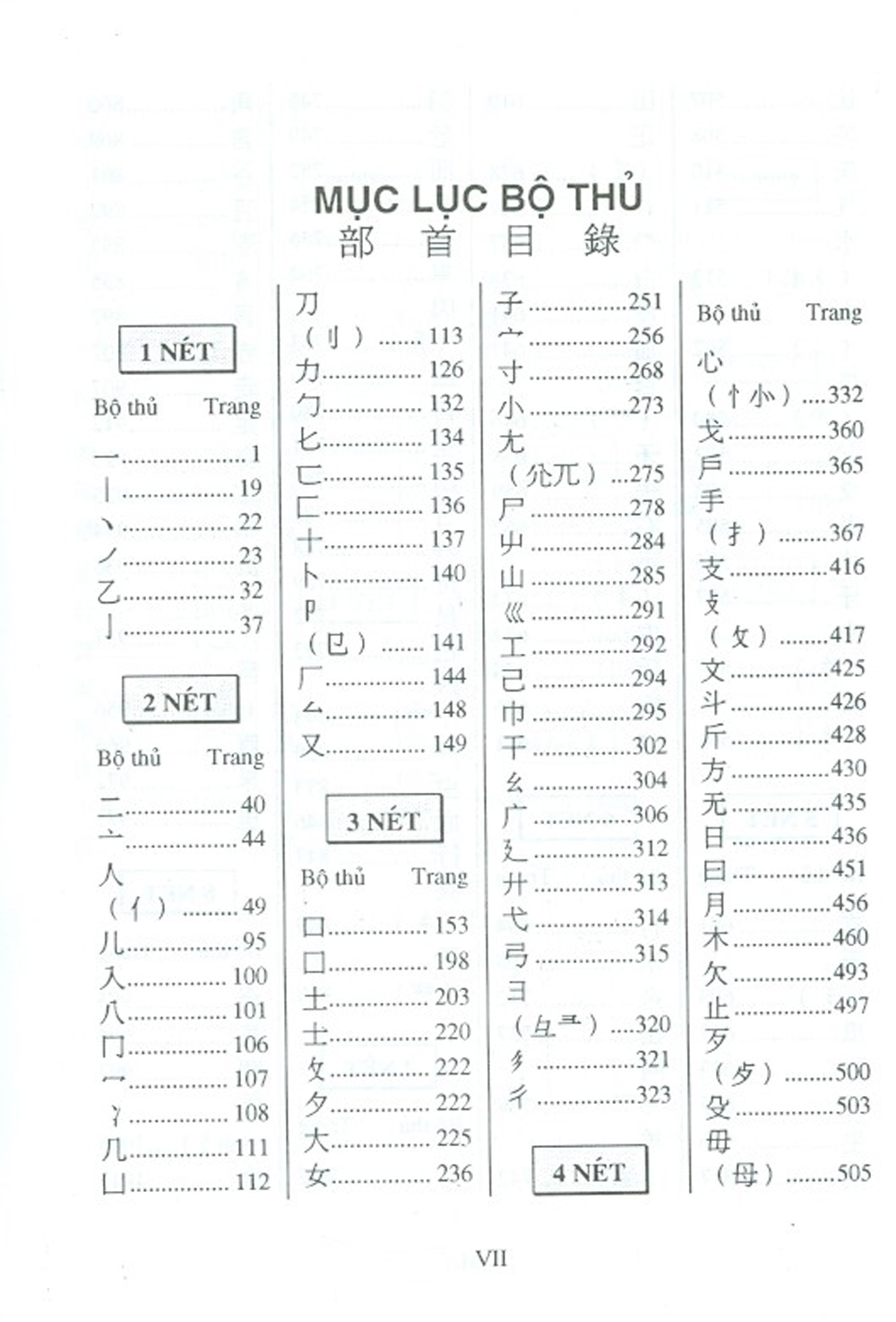 Có các bảng tra từ tiện dụng xếp theo âm Hán Việt và âm Bắc Kinh.