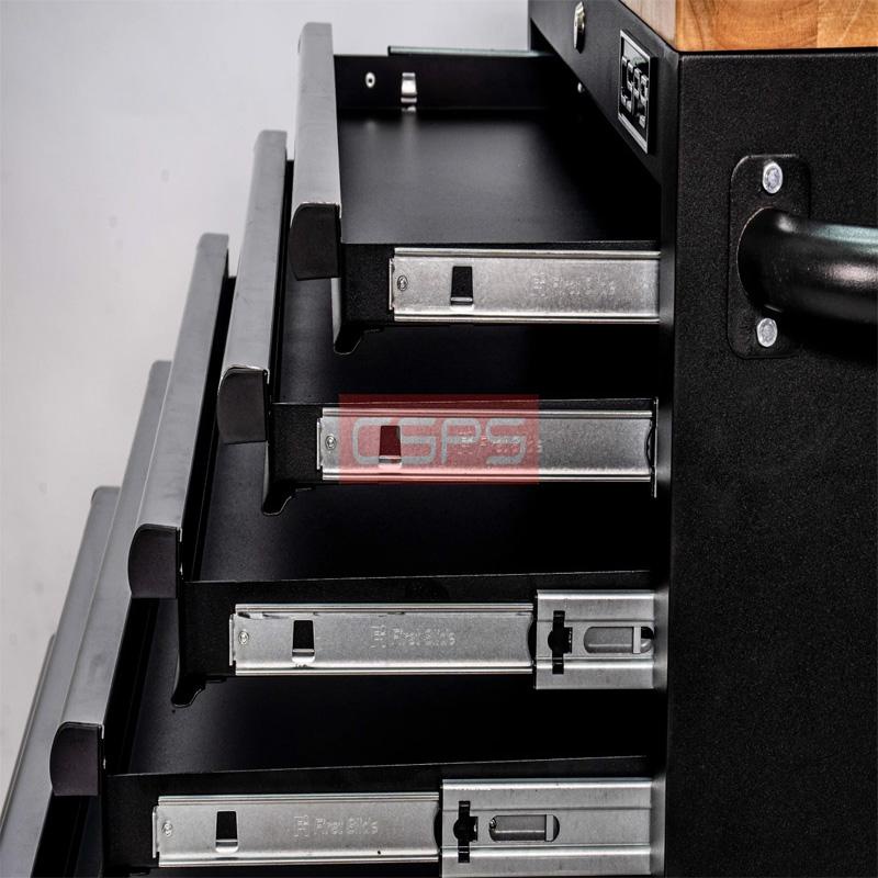 Tủ dụng cụ 7 ngăn kéo có mặt ván gỗ kèm ray đóng êm CSPS THÔNG SỐ KỸ THUẬT 1) THÔNG SỐ CHUNG Kích thước sản phẩm: 76,5 cm W x 46,2 cm D x