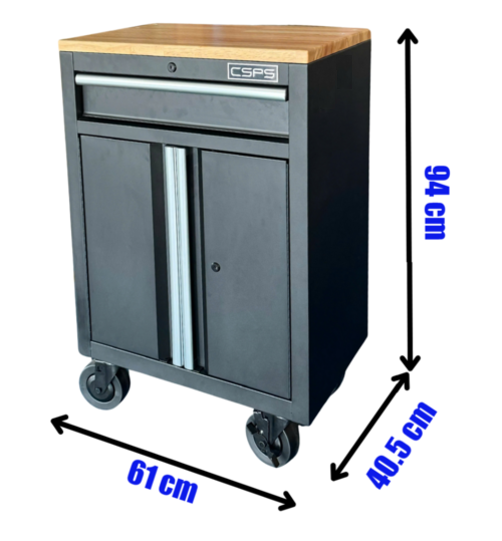Tủ dụng cụ CSPS 61cm - 01 hộc kéo màu đen bánh xe ván gỗ (tay cầm trắng)