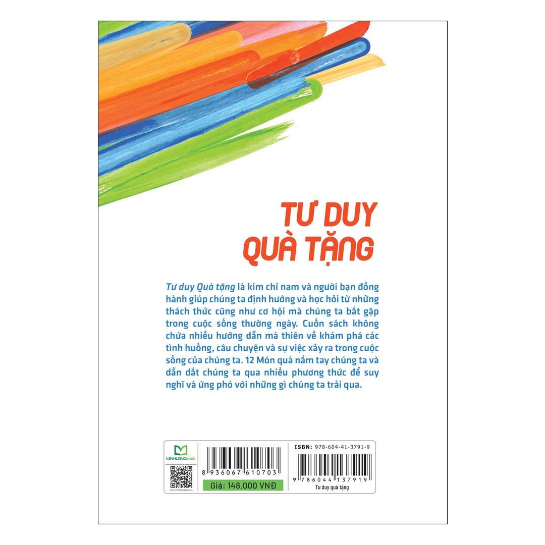 - Có gì trong cuốn sách Tư Duy Quà Tặng? Áp dụng Tư Duy Quà Tặng sẽ giúp bạn đón nhận thử thách và thành công với niềm vui cả trong lẫn ngoài nơi làm việc. Chia sẻ những bài học ta đúc rút được thông qua các món quà không chỉ tiếp thêm sức mạnh cho ta, mà còn có thể trở thành cẩm nang sinh tồn của người khác và giúp tạo ra một văn hóa chia sẻ, cởi mở. Phần I của cuốn sách sẽ giúp bạn nắm bắt khái niệm Tư Duy Quà Tặng. Trong phần II, ta sẽ khám phá 12 món quà: Món quà lạc quan, dũng cảm, kiên cường, biết ơn, tò mò, thay đổ Bạn có thể đọc về những món quà này theo bất kì trình tự nào, tùy thuộc vào nhu cầu của bạn và điều quan trọng đối với bạn tại thời điểm đọc. Một cuốn sách sẽ sống đúng với mục đích của nó khi bị quăn mép, đánh dấu và cũ sờn; cuốn sách này hứa hẹn sẽ trở thành một nguồn tài liệu quý báu và một món quà mang lại giá trị lâu dài trong việc phát triển và thay đổi văn hóa trong các tổ chức và sự kết nối. Đây là một cuốn sách đầy cảm hứng, hứa hẹn sẽ đồng hành cùng bạn trong việc thúc đẩy văn hóa lấy con người làm trung tâm, phát triển khả năng lãnh đạo, tạo động lực cho mọi người để phát huy tối đa khả năng làm việc của mình, mang đến hiệu quả một cách tốt nhất!
