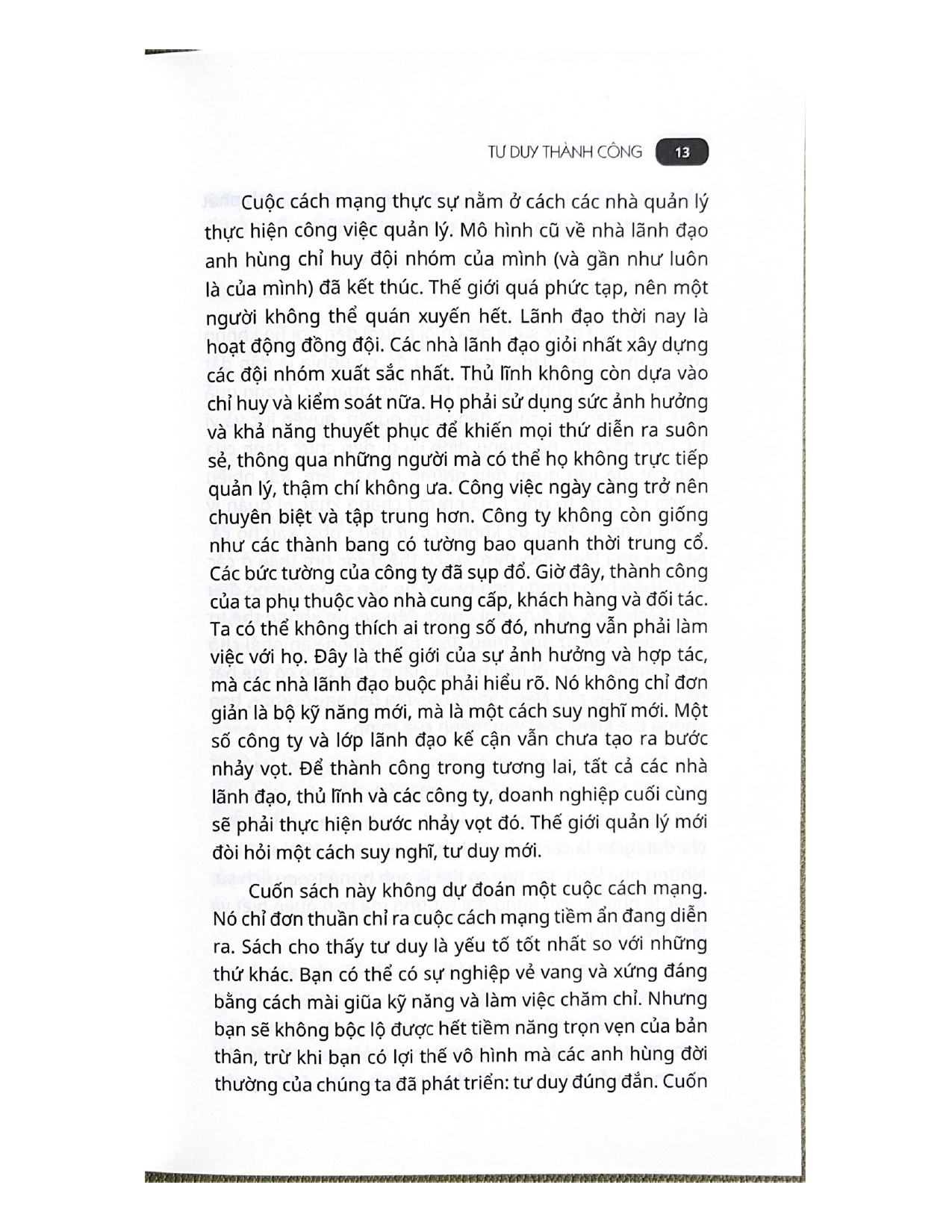 Tư Duy Thành Công-Vanlangbooks I.Giới thiệu sách Tư duy thành công cung cấp bộ công cụ đầy đủ và được cấu trúc rõ ràng, nhằm giúp các nhà quản lý khai phá hết tiềm năng