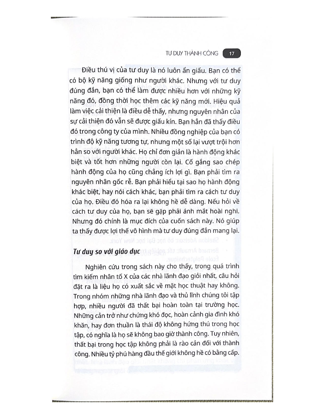 Tư duy thành công cung cấp bộ công cụ đầy đủ và được cấu trúc rõ ràng, nhằm giúp các nhà quản lý khai phá hết tiềm năng của bản thân.