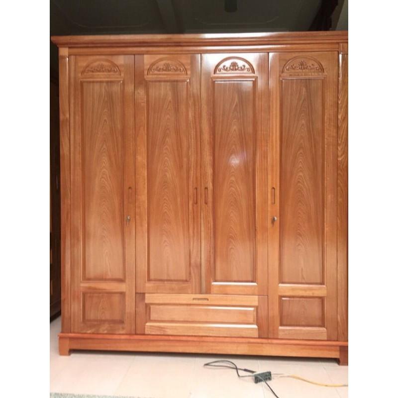 Tủ quần áo 4 cánh gỗ gõ đỏ đầy đủ công năng, thiết kế hiện đại | Minh Khôi