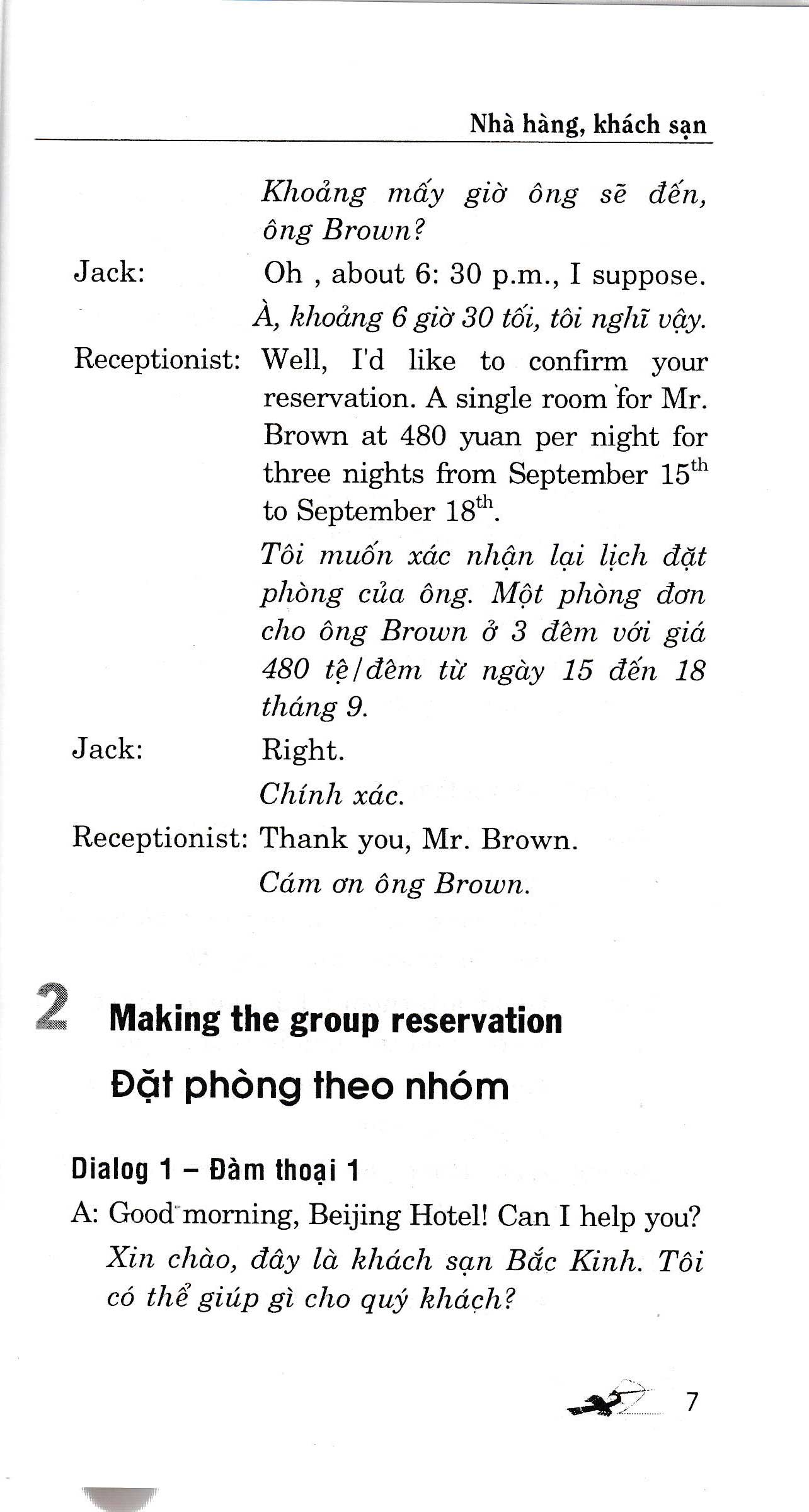 Với mục tiêu hỗ trợ những ai muốn bắt đầu sự nghiệp trong lĩnh vực này, cuốn sách không chỉ là một nguồn tư liệu học tập mà còn là một công cụ hữu ích để chuẩn bị cho các tình huống giao tiếp phổ biến trong ngành. Nhờ vào nội dung chuyên sâu và dễ tiếp cận, đây thực sự là một nguồn tài liệu đáng giá cho bất kỳ ai muốn nâng cao trình độ tiếng Anh chuyên ngành nhà hàng - khách sạn.