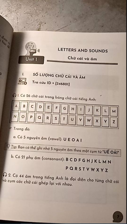 - Unit 1: Giới thiệu về chữ cái và âm.