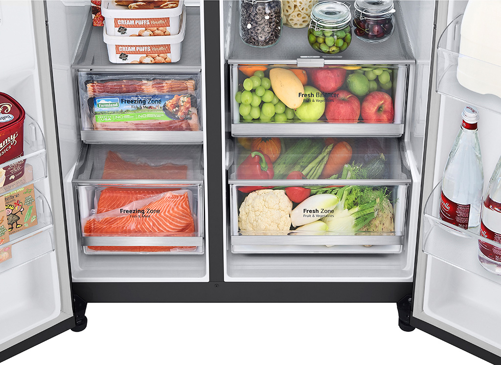 - ĐƯỢC KHUI THÙNG KIỂM TRA sản phẩm trước khi thanh toán/ký nhận Tủ Lạnh LG Inverter 635 Lít GR-X257BL - Dung tích lớn, tiết kiệm năng lượng vượt trội Thiết kế hiện đại, dung tích lớn Tủ Lạnh LG Inverter 635 Lít GR-X257BL là sản phẩm đẳng cấp với thiết kế hiện đại cùng sắc đen sang trọng. Tủ lạnh sẽ là điểm nhấn tinh tế trong không gian bếp của bạn. Tủ lạnh LG Side by Side có khay ngăn được làm từ kính cường lực chất lượng, giúp bảo vệ sản phẩm khỏi va đập và nâng cao tính thẩm mỹ bên trong tủ. Tủ lạnh này được trang bị ngăn đựng chai lọ tiện lợi, giúp bạn tổ chức thực phẩm một cách gọn gàng và dễ dàng tìm kiếm. Với dung tích thực lên đến 635 lít, tủ lạnh này phù hợp cho gia đình có từ 5 thành viên trở lên. Bạn có đủ không gian để bảo quản thực phẩm và đồ uống một cách dễ dàng. Công nghệ InstaView Door-In-Door của tủ lạnh LG là một tính năng độc đáo giúp tối ưu hóa sự tiện ích và hiệu suất bảo quản thực phẩm. Với thiết kế mặt kính đẹp mắt và trong suốt, bạn chỉ cần gõ nhanh lên bề mặt cửa, và kính sẽ bật sáng lên, cho phép bạn nhìn xuyên thấu vào bên trong mà không cần phải mở cửa tủ. Công nghệ làm lạnh LINEARCooling LINEARCooling là một công nghệ tiên tiến được LG tích hợp trong tủ lạnh để giữ cho thực phẩm của bạn luôn tươi ngon và bền lâu. Công nghệ này sử dụng máy nén tuyến tính đảo lưu để kiểm soát nhiệt độ bên trong tủ lạnh một cách ổn định và hiệu quả. Sự ổn định trong việc kiểm soát nhiệt độ giúp bảo vệ hương vị của thực phẩm. Công nghệ này quan trọng đối với việc bảo quản rau củ, thịt và các thực phẩm tươi ngon khác. Làm lạnh từ cánh tủ DoorCooling+ DoorCooling+ sử dụng các lỗ thông hơi được đặt ở trên phần trước của tủ lạnh để cung cấp không khí lạnh đến các khu vực bảo quản thực phẩm trong các ngăn đựng ở phần trên của cửa. Khi bạn mở cửa tủ và đóng lại, DoorCooling+ sẽ bắt đầu làm lạnh ngay lập tức trong vòng 15 giây. Điều này giúp thực phẩm trong tủ lạnh nhanh chóng đạt được nhiệt độ lý tưởng và duy trì sự tươi ngon. Diệt khuẩn và khử mùi Hygiene Fresh+ Hygiene Fresh+ không chỉ loại bỏ vi khuẩn trong tủ lạnh với hiệu suất lên đến 99,999%, mà còn ngăn chặn sự phát triển của chúng. Điều này giúp bảo vệ thực phẩm khỏi sự ô nhiễm vi khuẩn và đảm bảo sự an toàn cho sức khỏe của bạn và gia đình. Công nghệ Hygiene Fresh+ còn có khả năng khử mùi hiệu quả bên trong tủ lạnh. Những mùi không mong muốn như mùi hải sản, thức ăn thiu, hay mùi hành tỏi sẽ được loại bỏ một cách nhanh chóng, giữ cho thực phẩm luôn thơm ngon và không bị nhiễm mùi từ các thức ăn khác. Máy làm đá tự động (Spaceplus), làm đá viên, đá nghiền Hệ thống làm đá SpacePlus không chỉ tạo sự tiện lợi mà còn tăng thêm tính thẩm mỹ cho tủ lạnh. Được tích hợp vào cửa tủ với thiết kế mỏng gọn, cho phép bạn sử dụng toàn bộ phần giá trên cùng mà không bị giới hạn bởi máy làm đá truyền thống. Hãy quên đi việc phải mua đá ở ngoài, với SpacePlus, bạn luôn có đủ đá mà không cần lo lắng về không gian hoặc thời gian. Đông nhanh Express Freeze Chức năng Đông Nhanh Express Freeze trên tủ lạnh giúp bạn đông thực phẩm một cách nhanh chóng và hiệu quả. Khi cần bảo quản thực phẩm tươi ngon mà không muốn chờ đợi lâu, bạn chỉ cần kích hoạt tính năng này và tủ lạnh sẽ làm việc đông lạnh với tốc độ cao, giúp tiết kiệm thời gian và đảm bảo thực phẩm được bảo quản tối ưu. Hộp tiện ích Utility Box, giá đựng rượu Đôi khi, những món khoái khẩu nhỏ nhắn có thể bị che khuất trong tủ lạnh. Với tính năng độc đáo của Utility Box, bạn có một không gian tối ưu để bảo quản và sắp xếp các thực phẩm nhỏ một cách tiện lợi. Với giá đựng rượu tích hợp trong tủ lạnh, bạn có thể tận dụng không gian một cách hiệu quả để bảo quản các chai rượu yêu thích của mình. Điều này giúp bạn tổ chức bữa tiệc hoặc thư giãn cùng gia đình và bạn bè một cách dễ dàng. Hộp tiện ích Utility Box Hộp tiện ích Utility Box Thiết kế ống dẫn kim loại phẳng Metal Fresh Thiết kế ống dẫn kim loại phẳng Metal Fresh là một đột phá mới trong ngành công nghiệp tủ lạnh. Được tích hợp trực tiếp vào tủ lạnh, ống dẫn kim loại này không chỉ giúp làm lạnh nhanh chóng mà còn mang lại sự hiện đại và tiện nghi cho sản phẩm của bạn. Bảo quản tươi ngon FRESHBalancer FRESHBalancergiúp bảo quản rau củ tươi ngon lâu hơn. Công nghệ này ngăn chặn hơi nước bay hơi ra ngoài như trong các loại tủ thông thường. Điều này đồng nghĩa với việc thực phẩm của bạn sẽ luôn giữ được độ tươi ngon và dinh dưỡng cho đến khi sử dụng. Ngăn lấy nước ngoài và diệt khuẩn với UVnano UVnano tự động làm sạch bên trong vòi nước trong khoảng thời gian 10 phút mỗi giờ. Tính năng này cũng có thể được kí