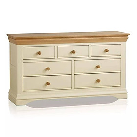 Tủ ngăn kéo 3+4 Country Cottage có kiểu dáng tuyệt đẹp và cân đối, với các góc loe thanh lịch và hai tông màu tương phản, bắt mắt. Sản phẩm được chế tác một cách chuyên nghiệp, từ chất liệu gỗ sồi trắng Mỹ chất lượng cao. Thiết kế bảy ngăn kéo đáp ứng nhu cầu lưu trữ phong phú cho phòng ngủ. Để đáp ứng các yêu cầu về tiêu chuẩn chất lượng khắt khe của chúng tôi, các sản phẩm đều được thực hiện bằng phương pháp ghép mộng, nối khớp truyền thống. Đây cũng là chế tác thuộc bộ sưu tập Country Cottage hiện đại, góp phần mang lại vẻ đẹp thanh lịch và sang trọng cho không gian nội thất của mọi gia đình.