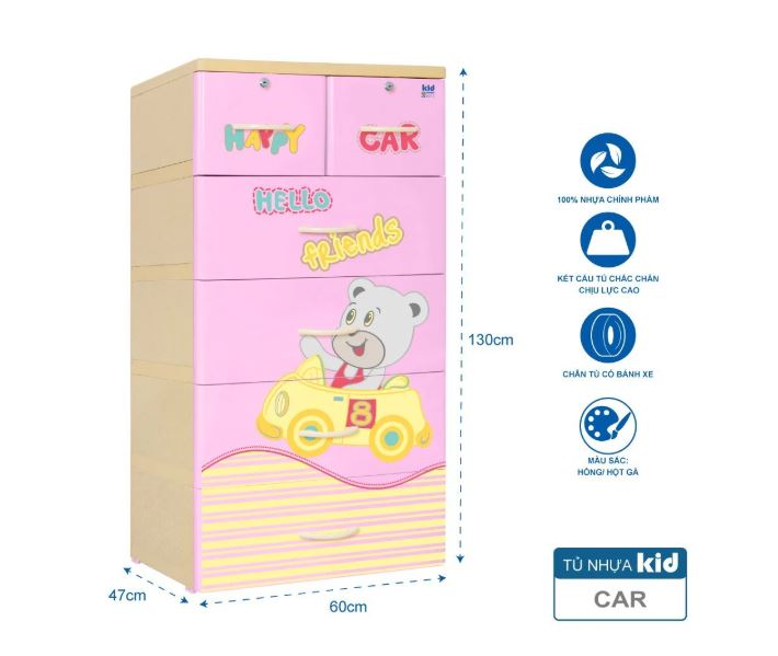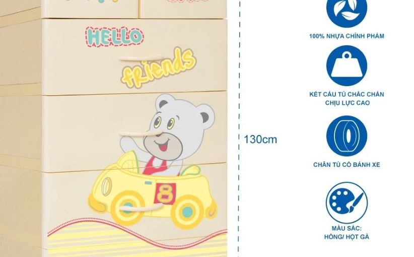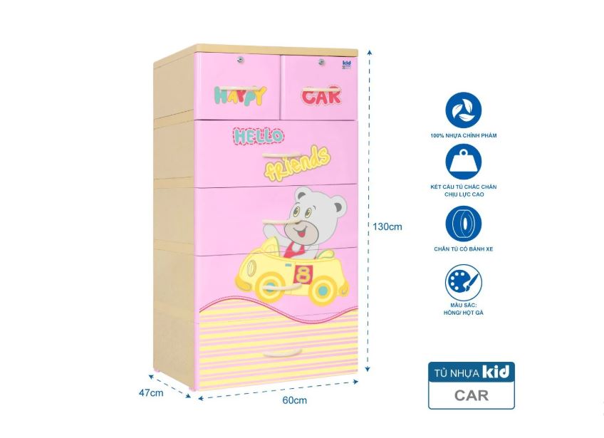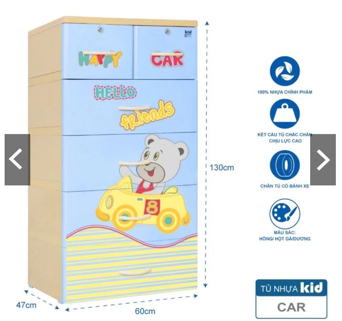 Tủ nhựa làm bằng nhựa đài loan nhập khẩu nên bền. Chắc , đẹp. Có nhiều màu , hình ngộ nghĩnh cho bé. tủ có nhiều ngăn rất thuận tiên cho bé cất đồ cá