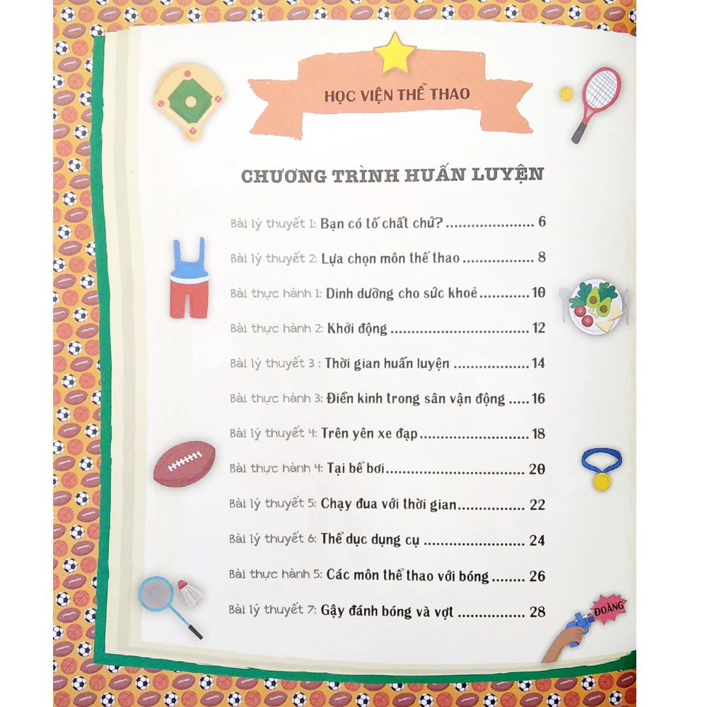 Cuối mỗi cuốn sách đều có các nhiệm vụ đơn giản để thực hành, trải nghiệm, kiểm tra kỹ năng và củng cố thông tin bạn đã khám phá các môn thể thao khác nhau và học cách suy nghĩ như một ngôi sao thể thao.