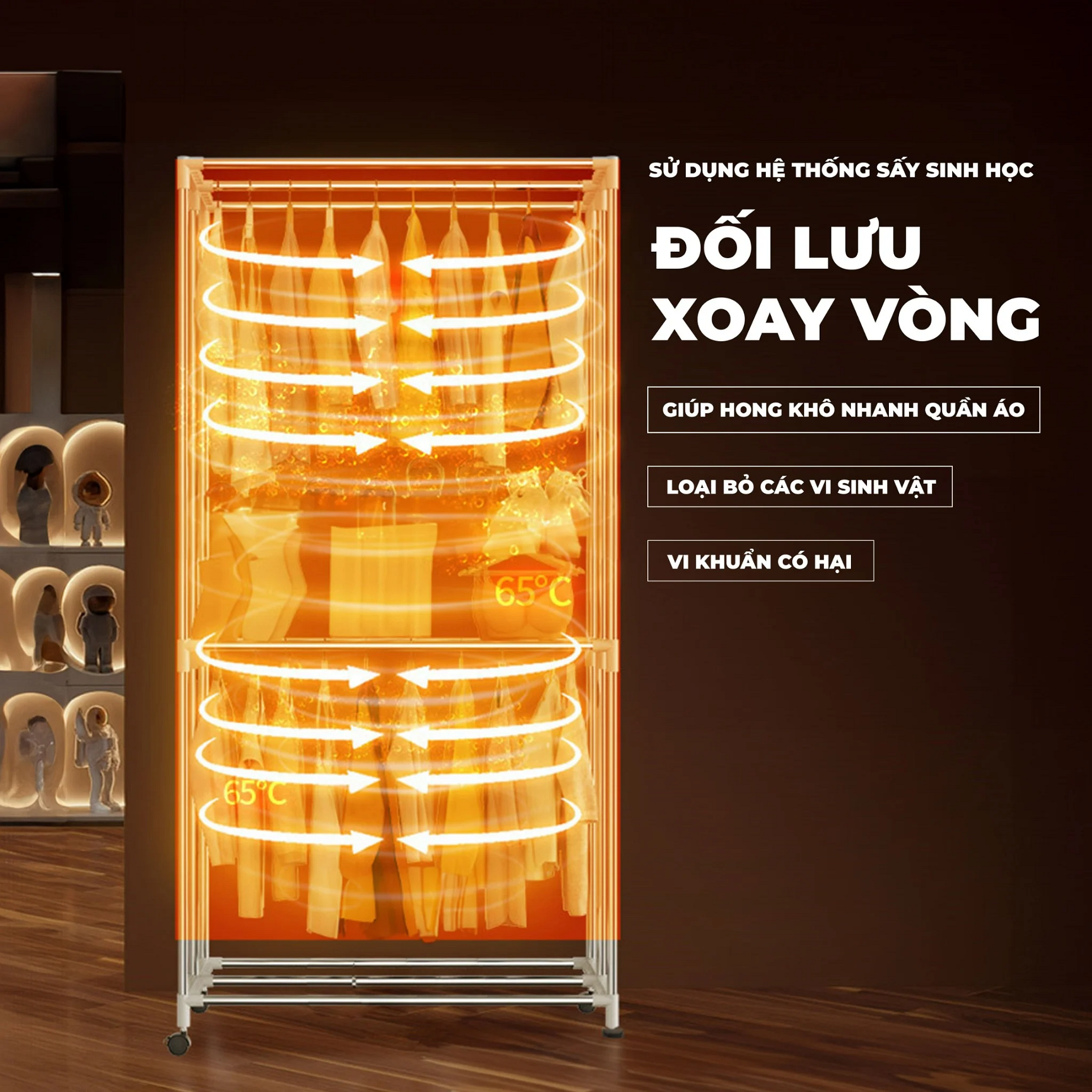 Mua tại TiktokTủ Sấy Quần Áo Đạt Tường, Máy Sấy Quần Áo Công Suất 2000W, Sấy Nhanh, Khử Khuẩn, Loại Bỏ Mùi Hôi- DTSQA- CO2 ĐẶC ĐIỂM NỔI BẬT: Làm khô nhanh quần áo, giúp loại bỏ mùi hôi khó chịu, bụi bẩn trên quần áo. Dung tích lớn, chứa được số lượng quần áo lớn. Đáp ứng được số lượng quần áo lớn. Sấy được nhiều loại quần áo trong gia đình nhiều thành viên Sử dụng bộ phát điện ổn định PTC, tiết kiệm điện. Sử dụng hệ thống sấy sinh học đối lưu xoay vòng, giúp hong khô nhanh quần áo, loại bỏ các vi sinh vật, vi khuẩn có hại. Thiết kế đơn giản với bánh xe giúp di chuyển linh hoạt. Chế độ hẹn giờ thông minh, thời gian linh hoạt khi sử dụng. THÔNG TIN SẢN PHẨM