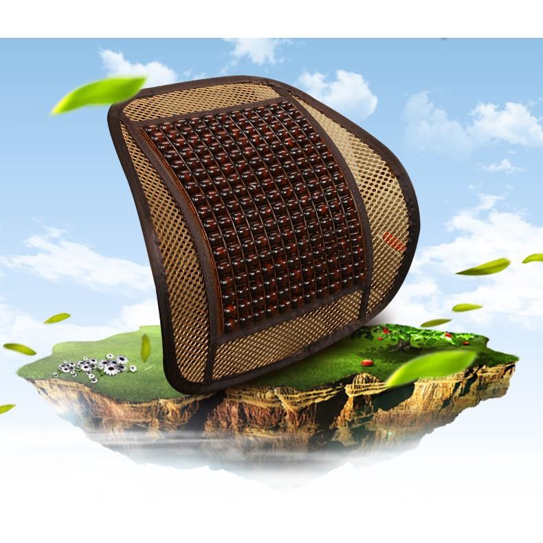 Tựa lưng lưới đan hạt gỗ cho ghế ô tô và văn phòng chống mỏi lưng có chốt cố định
