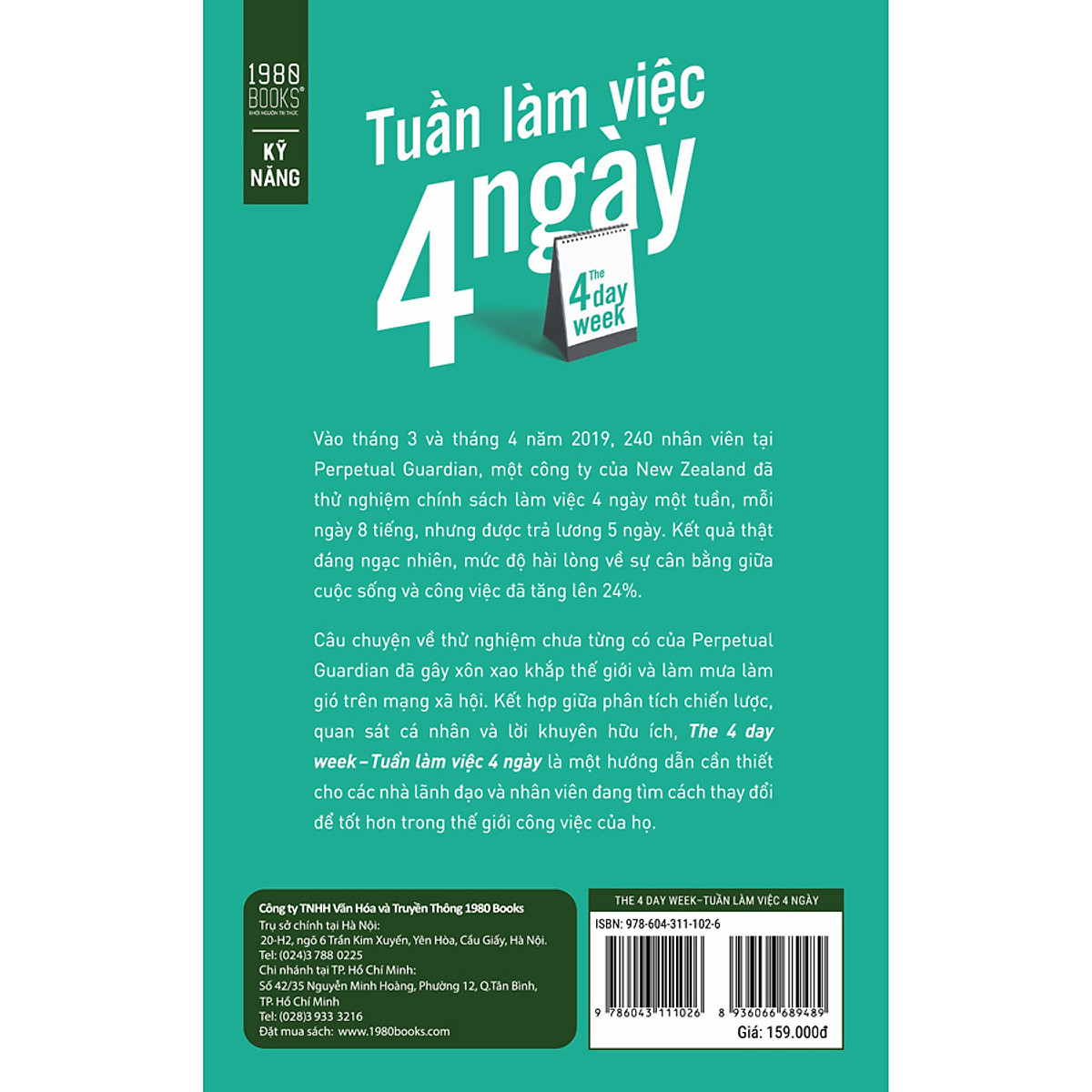 Câu chuyện về thử nghiệm công việc chưa từng có của Perpetual Guardian đã gây xôn xao khắp thế giới và làm mưa làm gió trên mạng xã hội, đạt hơn 4,5 tỷ khán giả toàn cầu. Kết hợp giữa phân tích chiến lược, quan sát cá nhân và lời khuyên hữu ích, “Tuần làm việc 4 ngày” là một hướng dẫn cần thiết cho các nhà lãnh đạo và nhân viên đang tìm cách thay đổi để tốt hơn trong thế giới công việc của họ.