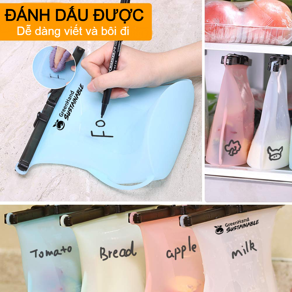 Túi Bảo Quản Thực Phẩm Silicone của GreenHand được làm từ 100% silicone và Tritan được dùng trong thực phẩm, không chứa BPA, BPS, BPF, PVC, phthalates, dầu mỏ, nhựa hoặc latex, được chứng nhận an toàn bởi FDA tại Hoa Kỳ và LFGB ở Châu Âu.