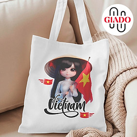 ✨Túi canvas GIADO, túi vải bố, túi tote mẫu cô gái Việt Nam áo dài - Nhiều kích thước và màu sắc