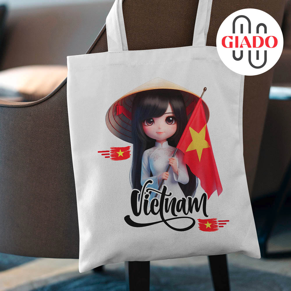Túi canvas GIADO, túi vải bố, túi tote mẫu cô gái Việt Nam áo dài - Nhiều kích thước và màu sắcTúi canvas GIADO, túi vải bố, túi tote mẫu cô gái Việt Nam áo dài - Nhiều kích thước và màu sắc