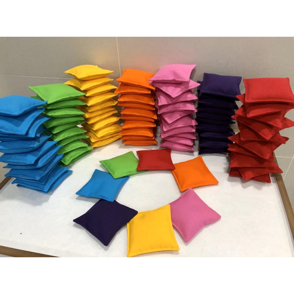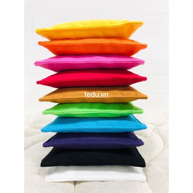 - Hiện TEDU đang làm bộ 7 màu như hình, kích thước thành phẩm là 12x12cm, trọng lượng 100gr/túi. Các trường có nhu cầu thêm màu thì mình inbox nhé. Túi theo màu dễ chia nhóm để hoạt động ạ. CHƠI GÌ VỚI TÚI NÉM: