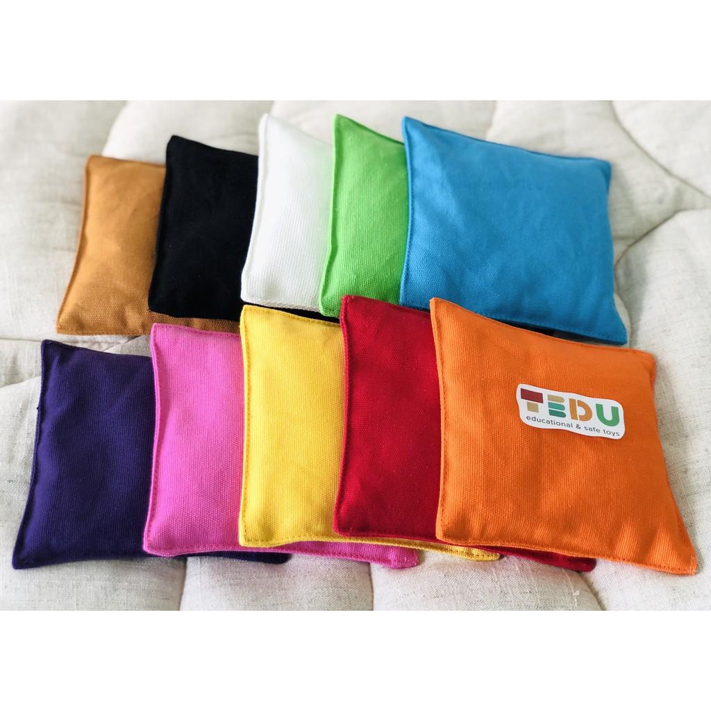 - TÚI CÁT- TÚI NÉM MẦM NON TEDU 12X12cm 100gram/túi Túi ném của Tedu có gì đặc biệt? 1. Túi được may chất liệu vải bố dày, màu tươi bắt mắt, đường may đẹp và