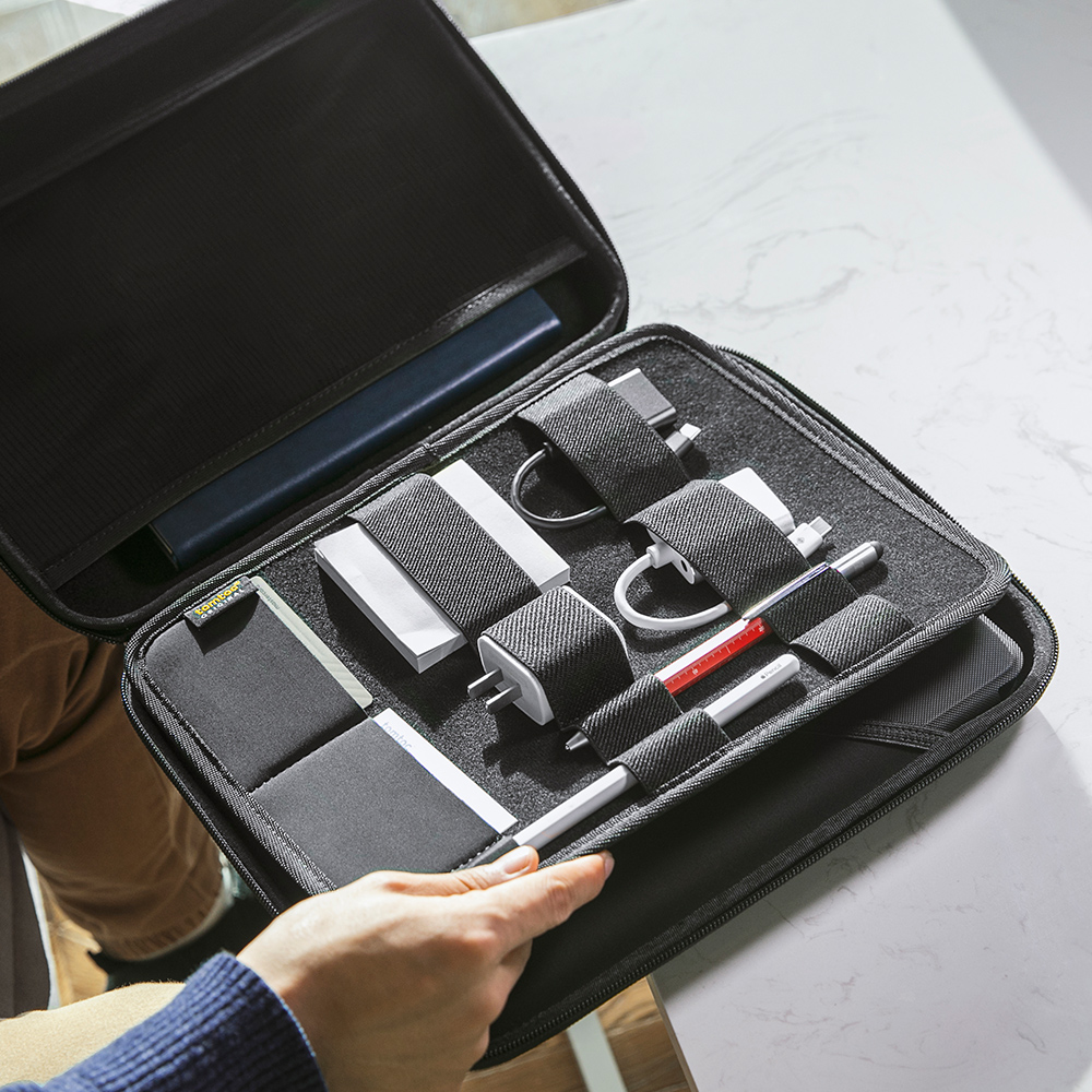 Đây có lẽ là chiếc túi chống va đập mà người dùng iPad/tablet chờ đợi nhất thời gian qua, nó như một chiếc hộp đa năng đựng iPad và những vật dụng cá nhân khi ra ngoài hoặc đến bất kỳ nơi nào. Bên ngoài là vỏ cứng EVA được làm để bảo vệ tốt nhất cho iPad, ngăn chưa  có thể đựng iPad Pro 12.9inch và Surface Pro 12.3″ kèm theo bàn phím thông minh và Bút Apple mà không bị rơi ra ngoài. Dung lượng lớn: Có 4 dây đai đàn hồi để đựng cáp USB, tai nghe và nhiều phụ kiện nhỏ hơn. Có ngăn đựng thẻ tín dụng và Hộ chiếu, bên trong có 1 ngăn lưới có khoá kéo để chứa các vật dụng khác. Bên ngoài được làm từ vỏ cứng EVA tránh  bị biến dạng, ngoài ra vải bên ngoài túi còn làm từ vật liệu chống thấm nước. Thiết kế độc đáo, di chuyển tiện lợi và thoải mái, kèm theo dây đeo cổ tay thích hợp để mang theo ra ngoài Được làm từ chất liệu thương hiệu bền và Sử dụng khóa kéo hàng đầu của Nhật (YKK) và phần nhựa cứng DuraFlex Trọng lượng: 625g / 1.38lb Kích thước: 12.99 x 10.63 x 1.96in (330 x 270 x 50mm) Tương thích: 12.9-inch iPad Pro 2020 and 2018 3rd Gen (model A1876, A2014, A1895, A1983, ) with a Smart Keyboard Folio or most of the protective cases – 12.3-inch Microsoft Surface Pro X / 7 / 6 / 5 / 4 / 3 / 2 / 1 with a keyboard, Dell XPS 13 (9300)
