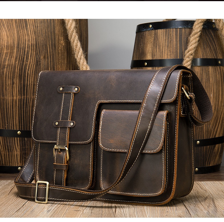 Túi Nam Da Bò Sáp Dáng Ngang BHM1050 (34 x 8 x 24 cm) có kiểu dáng vô cùng độc đáo và mới lạ tạo nên điểm nhấn mới cho người đeo. Thích hợp đi chơi, đi học, cả có thể đi làm.