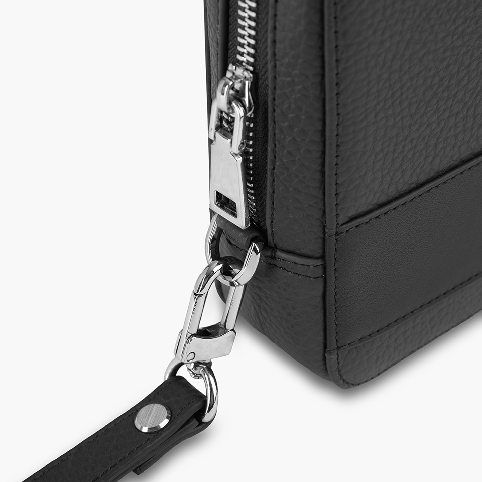 Ví cầm tay nam Gence da bò Box màu đen 2 khóa HT02