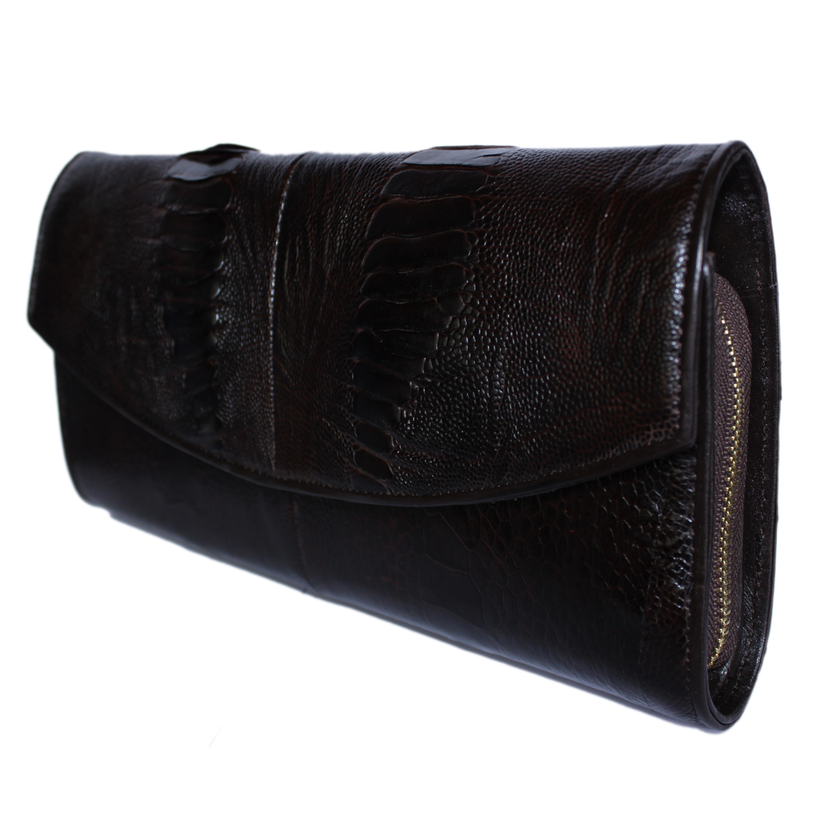 Túi cầm tay nữ Huy Hoàng da đà điểu màu đen, nâu đất, vàng bò, nâu đỏ 6451-52-53-54-55-56