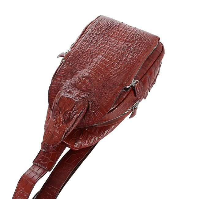 ✨Túi đeo trước nam da cá sấu Huy Hoàng đầu cá sấu màu nâu đỏ HC6292