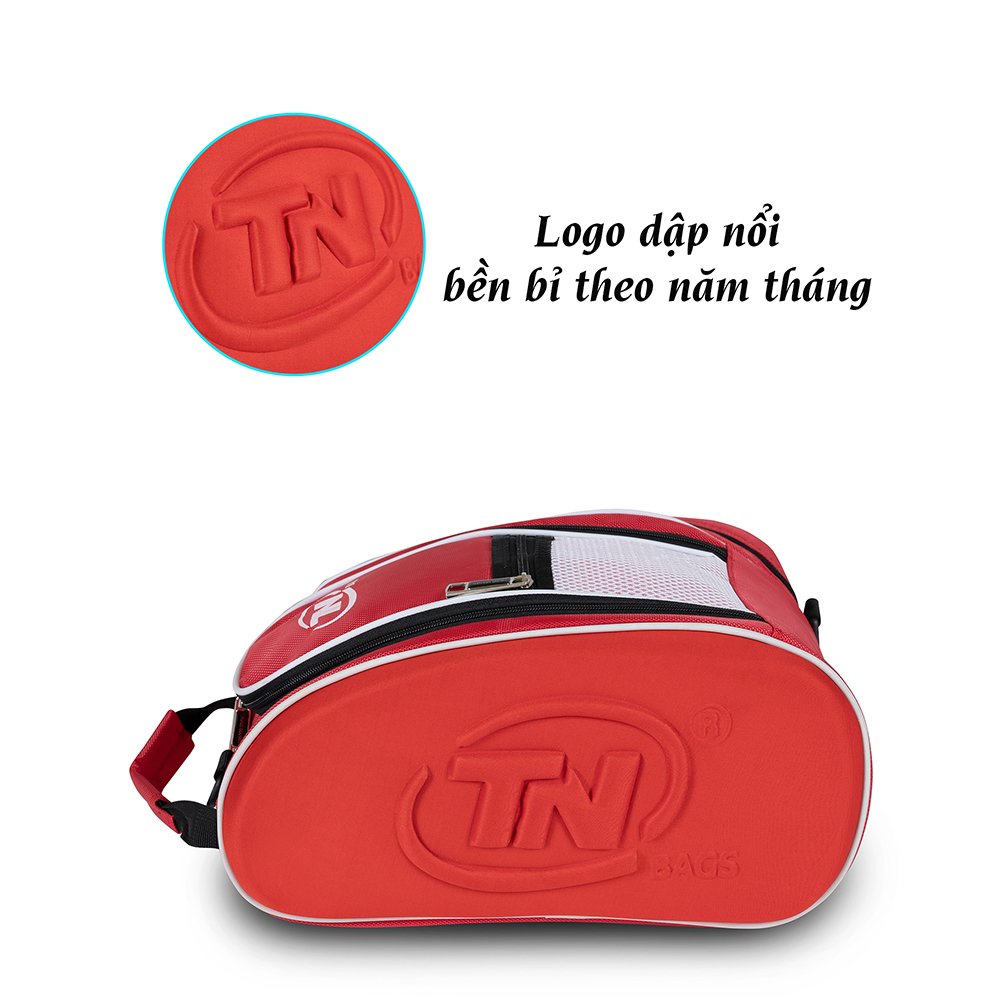 Túi đựng giày đá banh chống nước TN Bags có 2 ngăn, ngăn chính lớn dùng để đựng giày khi đi du lịch, chơi thể thao, đá bóng, ngăn nhỏ bên hông có thể đựng chai nước, các phụ kiện cần thiết.