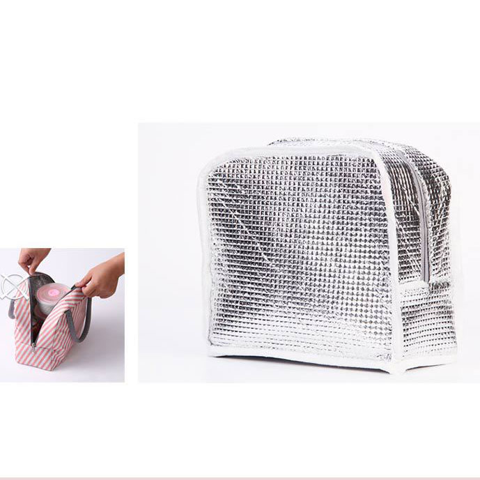 Chống thấm nước Túi 2 khóa kéo tiện dụng Túi bên trong có lớp giấy bạc giữu nhiêt , luôn giữ ấm cho đồ ăn Đựng vừa 3 hộp với dung tích 370ml Quai