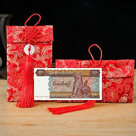 ✨Túi gấm màu nâu con Lân loại 50 Myanmar sưu tầm, làm quà tặng