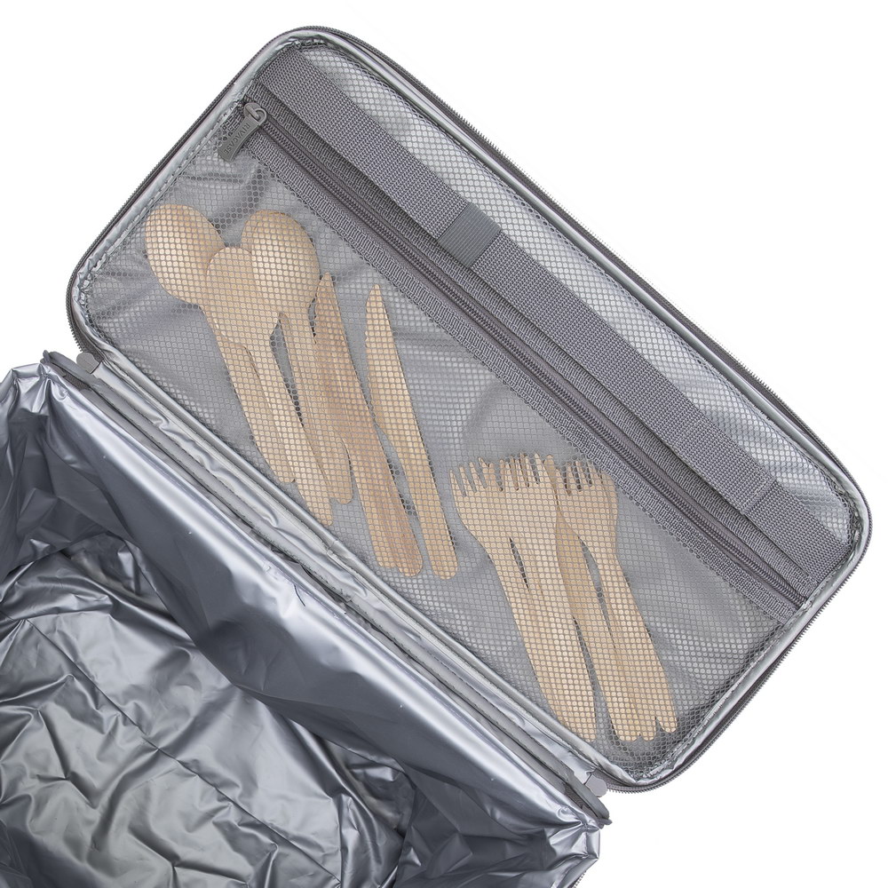 Thường thì những chiếc túi giữ lạnh không chỉ được dùng để đựng bia, rượu hay đá mà còn rất hữu ích để giữ cho thực phẩm luôn mát và tươi cho chuyến dã ngoại. Và thường thì các chuyến dã ngoại đòi hỏi một loạt các thiết bị để giúp nó trở thành trải nghiệm hoàn hảo. Dao kéo bằng nhựa hoặc bằng gỗ là một ví dụ cổ điển, hoặc thậm chí là một cái vặn nút chai. Đây là những thứ mà bạn không muốn phải tìm kiếm ở đáy túi, nơi mà cuối cùng bạn có thể sẽ tìm thấy chúng bị hư hỏng hoặc mất tích. Thay vào đó, chúng tôi đã cung cấp một túi có khóa kéo bằng lưới bên trong để bạn có thể dễ dàng bỏ các món đồ của mình đi và biết chúng ở đâu mọi lúc.