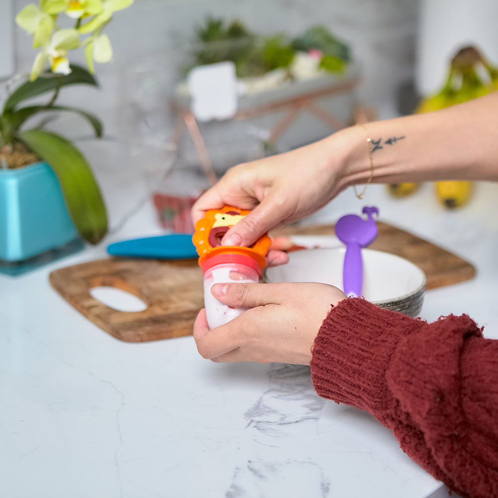 • Khả năng chịu nhiệt (túi nhai, gặm nướu, cây làm kem): từ -20 độ C đến 220 độ C Khác biệt vượt trội của Túi nhai ăn dặm chống hóc silicon kèm gặm nướu và nắp làm kem cho bé Marcus & Marcus Túi nhai ăn dặm chống hóc silicon kèm gặm nướu và nắp làm kem cho bé Marcus & Marcus nổi bật không chỉ nhờ chất lượng vượt trội mà còn được các bé đặc biệt yêu thích nhờ thiết kế thông minh phù hợp với giai đoạn phát triển của bé, màu sắc tươi sáng cùng họa tiết, tạo hình các con thú cưng dễ thương giúp bé hứng thú với bữa ăn và khuyến khích bé ăn uống độc lập.