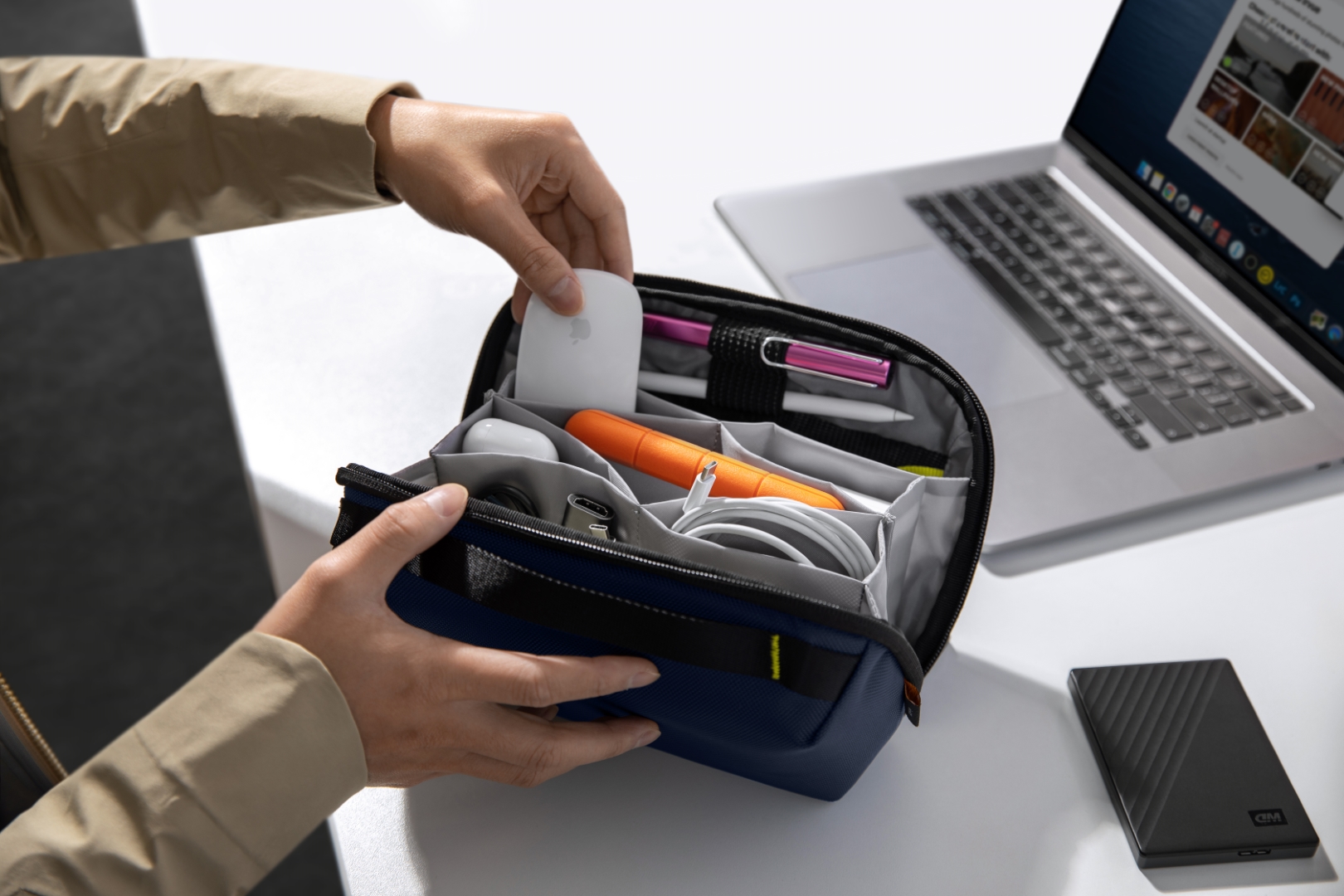 Cho dù bạn đi làm hàng ngày hay đi nghỉ dài ngày, bạn có thể mang theo rất nhiều phụ kiện điện tử, túi đựng phụ kiện Tomtoc có cấu trúc tốt và khả năng lưu trữ thông minh sẽ mang đến cho bạn sự tổ chức và dễ dàng truy cập vượt trội, giúp bạn thoát khỏi sự lộn xộn của chính mình.