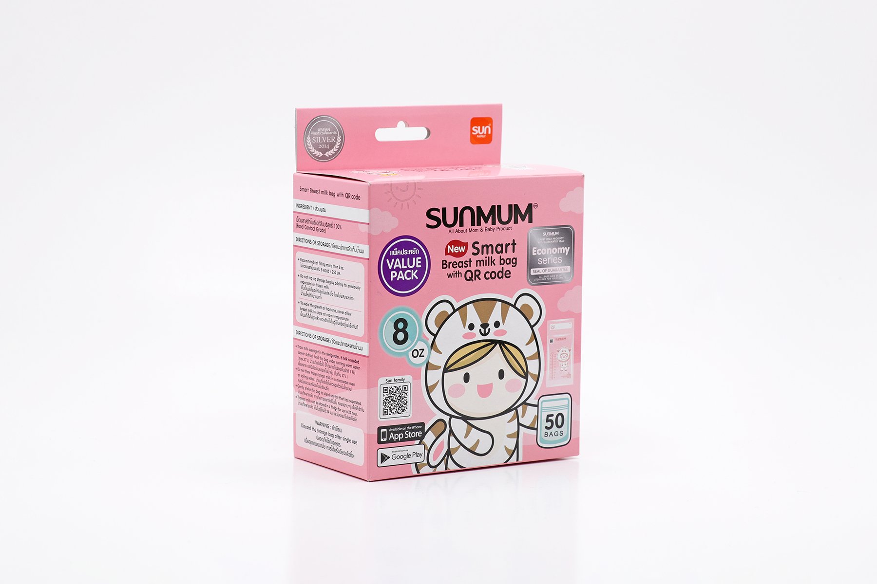- Thương hiệu túi trữ sữa Sunmum đạt giải thưởng chất lượng ASEAN năm 2014. Hướng dẫn sử dụng: Xé mép để mở miệng túi, cho sữa vào, ép hết không khí và đóng chặt túi. Bảo quản túi sữa trong tủ lạnh hoặc tủ đông trong thời gian quy định. Cho sữa vào bình để sử dụng.