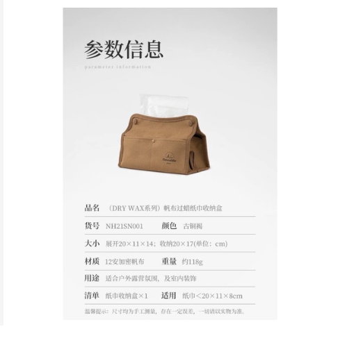 Hộp đựng giấy ăn gấp gọn NatureHike NH21SN001 chất liệu vải canvas 3 lớp sang trọng, có thể chống nước, chống dầu và bụi bẩn. Thiết kế gấp gọn và có quai treo vô cùng
