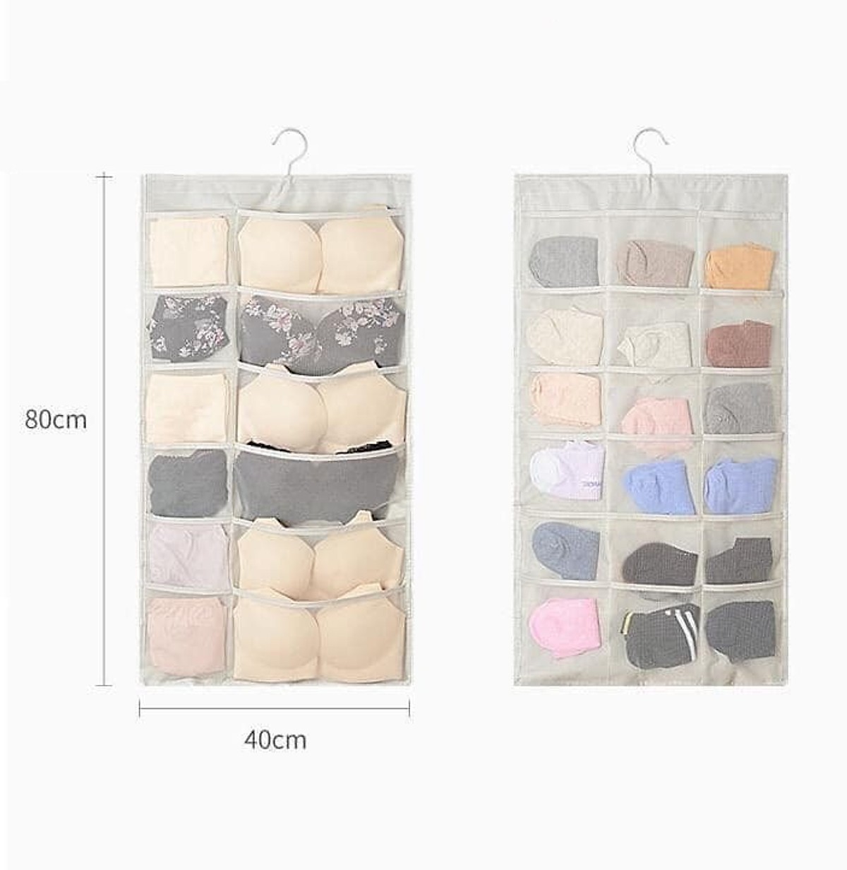 - Thiết kế 2 mặt chia làm 18 ô, 6 tầng, có thể treo lên móc treo trong tủ quần áo