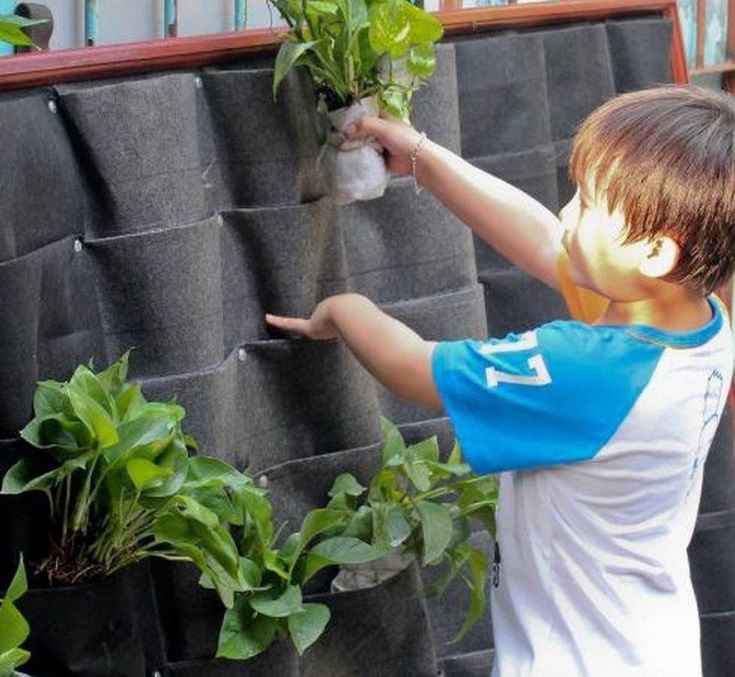 Túi vải trồng rau cho phép bạn tạo nên những bức tường xanh sinh động trong nhà, hoặc vườn rau ở những vị trí có ánh nắng vừa phải, tiết kiệm diện tích mặt sàn, tận dụng diện tích mặt đứng nhưng vẫn đủ rau ăn hàng ngày.