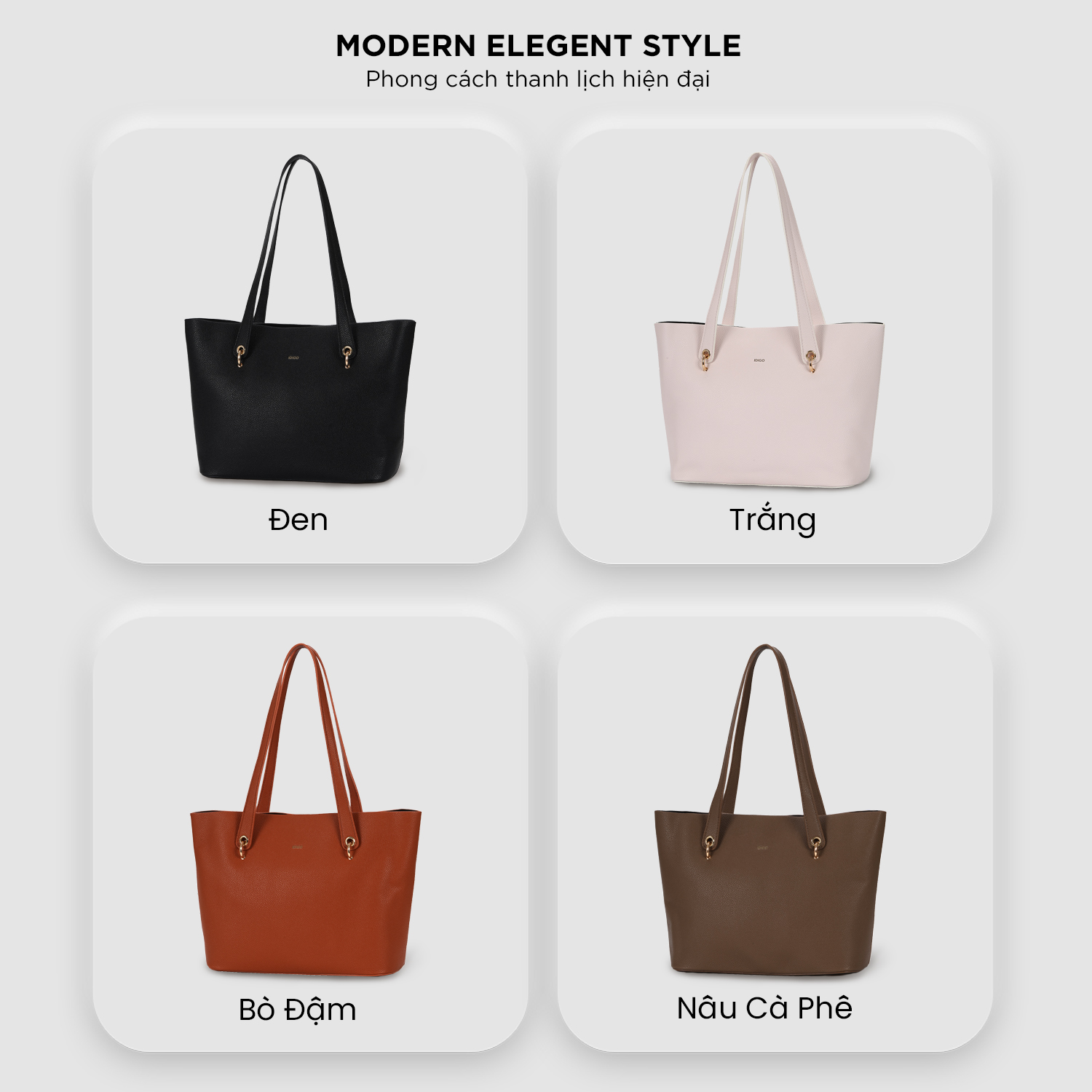 THIẾT KẾ NỔI BẬT - DÁNG CHUẨN FORM - Phom túi hình thang hiện đại, thanh lịch, nữ tính với chất liệu da tổng hợp cao cấp chống xước, chống bám nước - Phom túi
