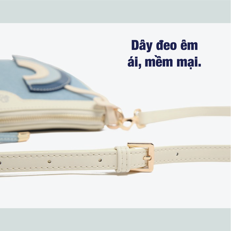 • Đường may tỉ mỉ, tinh tế, túi đeo cheo nữ có khóa kéo mượt mà, chắc chắn, in khắc logo sang trọng, độ bền cao trong quá trình sử dụng.