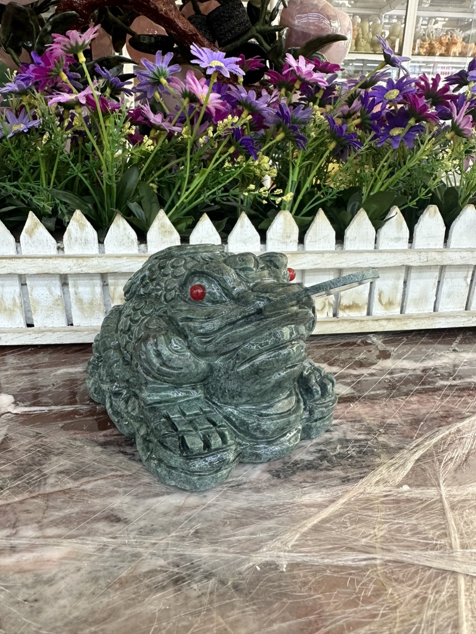 ✨Tượng Cóc Ba Chân, Cóc Ngậm Tiền, Thiềm Thừ phong thủy chiêu tài lộc đá ngọc serpentine - Dài 15 cm