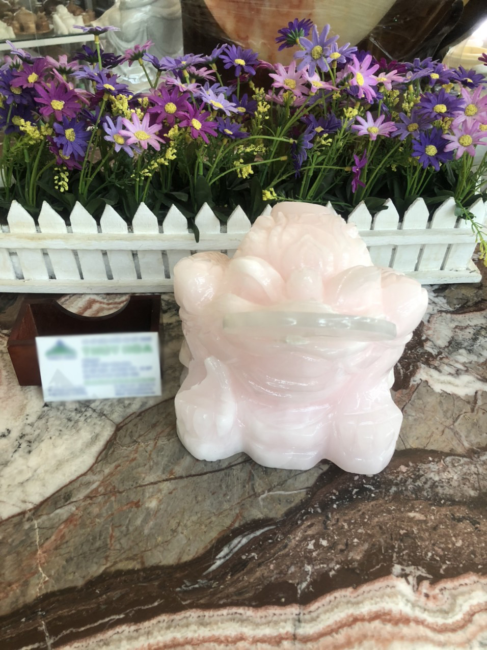 Chất liệu: Đá thạch anh hồng Kích thước: Dài 18 cm x Rộng 15,5 cm x Cao 16,5 cm Khối lượng: 6,8 kg