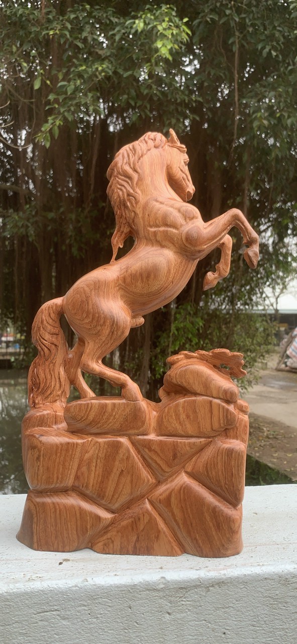 _ Tượng con ngựa nhất mã phi thiên được làm bằng chất liệu gỗ hương đá liền khối tự nhiên 100%