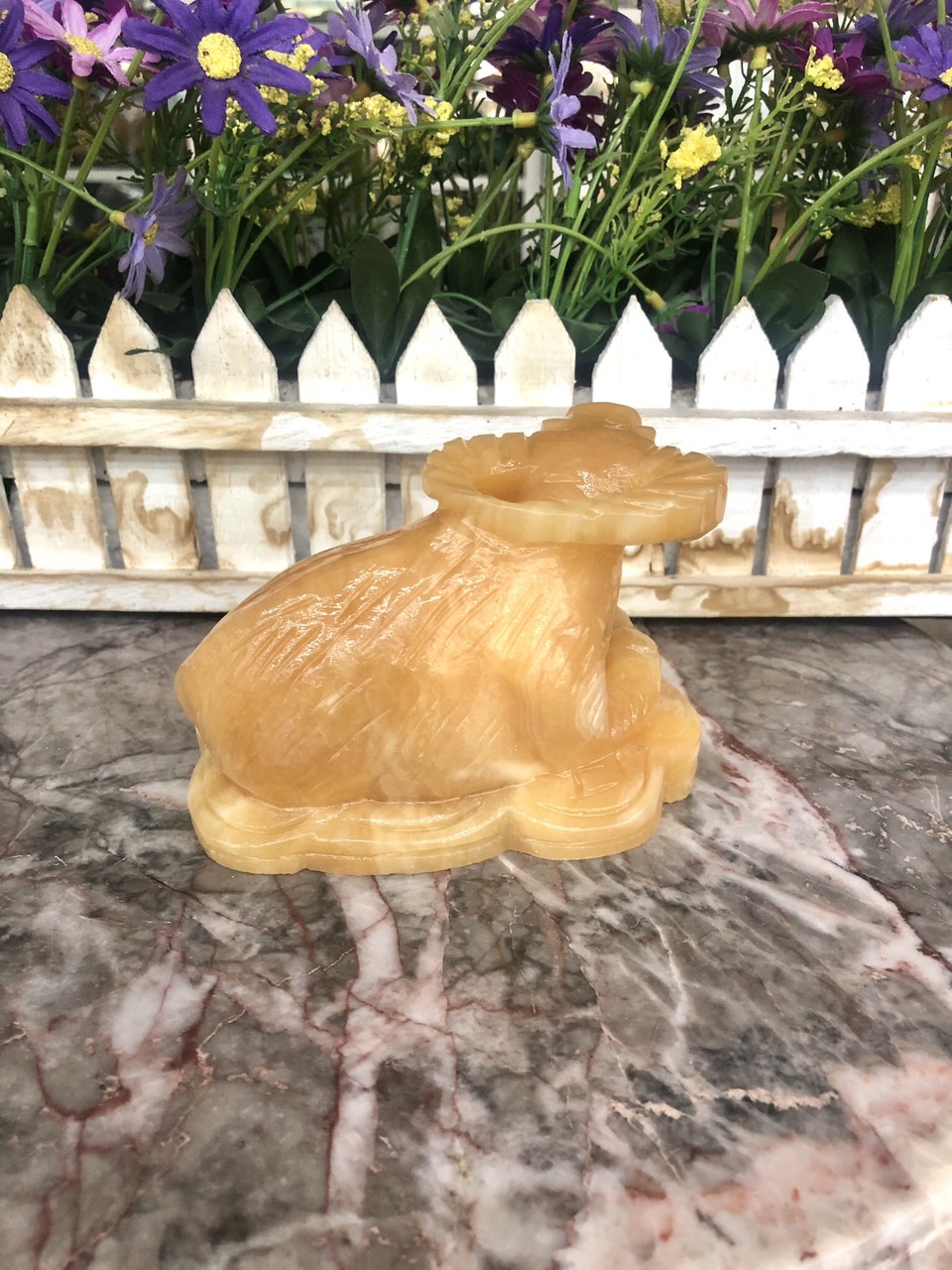 ✨Tượng con trâu giáp phong thủy đá ngọc hoàng long đặt bàn làm việc - Dài 11 cm