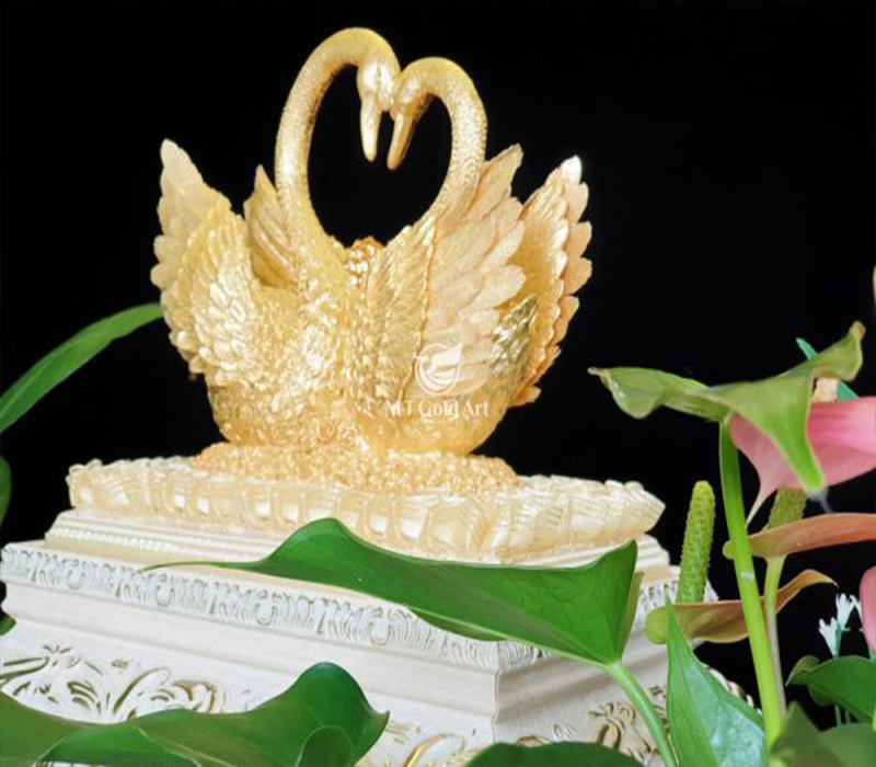 Tượng đôi chim thiên nga dát váng 24k sẽ mang lại sự sung túc, hạnh phúc lứa đôi cho gia chủ, cuộc sống hôn nhân hạnh phúc viên mãn.