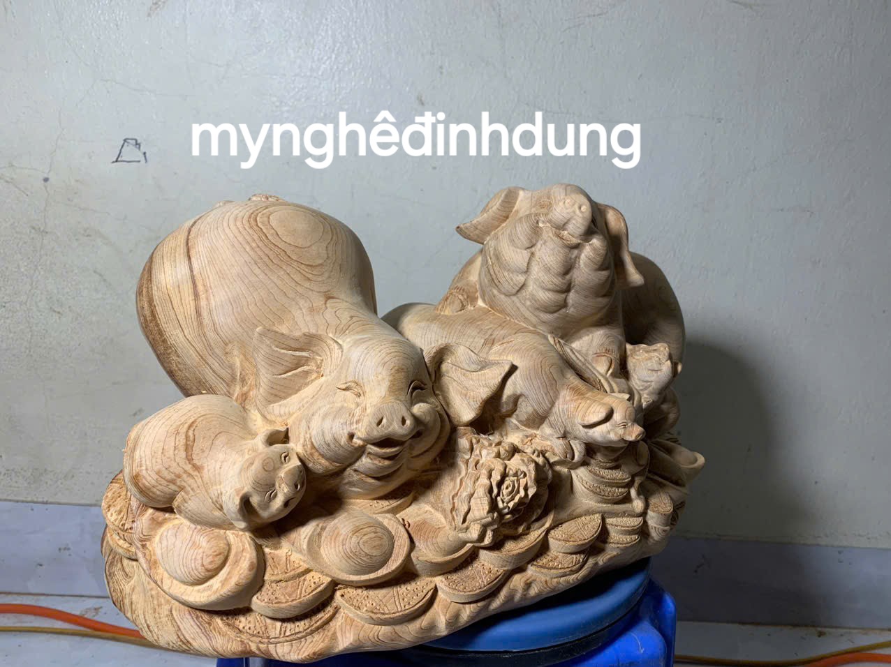 ✨Tượng gia đình lợn phong thủy bằng gỗ ngọc Am thơm nức 39x18x22cm