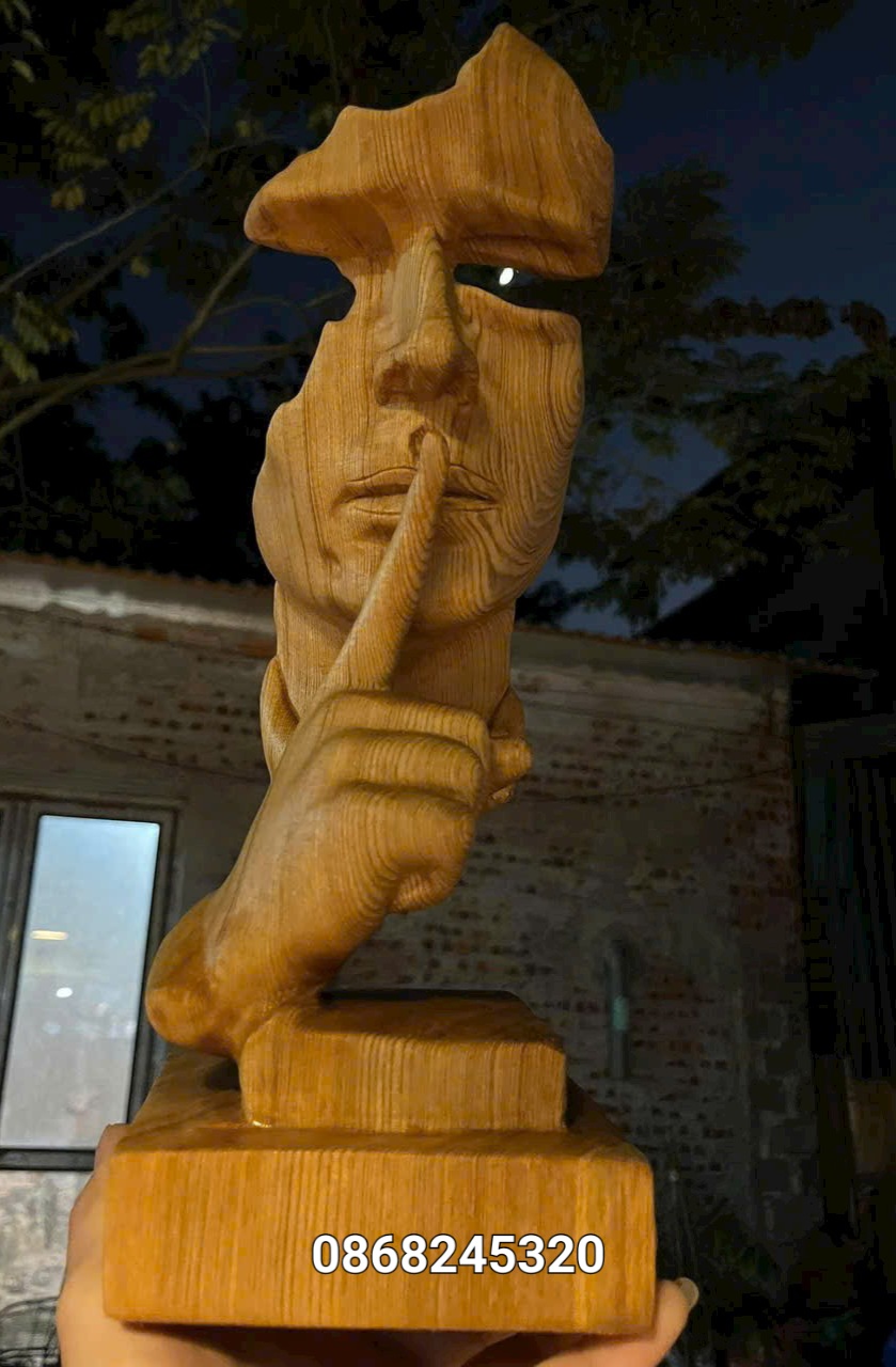 ✨Tượng im lặng là vàng bằng gỗ ngọc am thơm nức kt cao 34×13×12cm