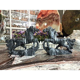 Chất liệu: Đá cẩm thạch vân đen Kích thước: Dài 25 cm x Rộng 6 cm x Cao 23 cm Khối lượng: 6,5 kg Ngựa được nhiều doanh nhân ưa chuộng. Bởi lẽ, trong phong