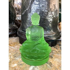 Tượng Phật Bà Quan Âm Mới Đá Lưu Ly Xanh Lá Tươi Đẹp Để Xe Hơi hoặc để bàn cao 12cm đk 7cm đế 5cm Hợp Mệnh Hỏa Mệnh Mộc ạ *** Tượng Phật Bà